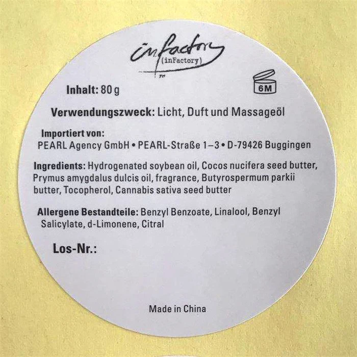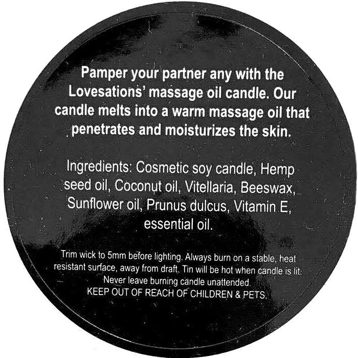 Circle Company Logo Sticker printed with product information for Massage Candle.